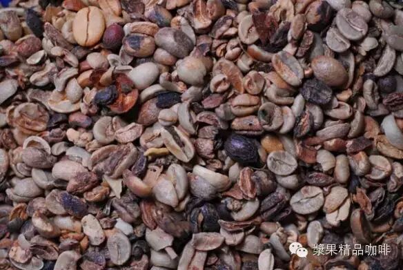 大家知道咖啡种子除了银皮还有外面的一层羊皮。咖啡生豆在加工过程中,去壳机间隔档会造成此种现象。